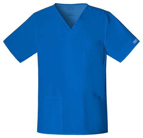 Μπλούζα unisex με V λαιμόκοψη με διπλά γαζιά. Δύο τσέπες κάτω με εξτρά τσεπάκι για κινητό η εργαλεία και τσεπάκι στήθους με κρεμασταράκι για ταυτότητα. Πλαϊνά σχισίματα.