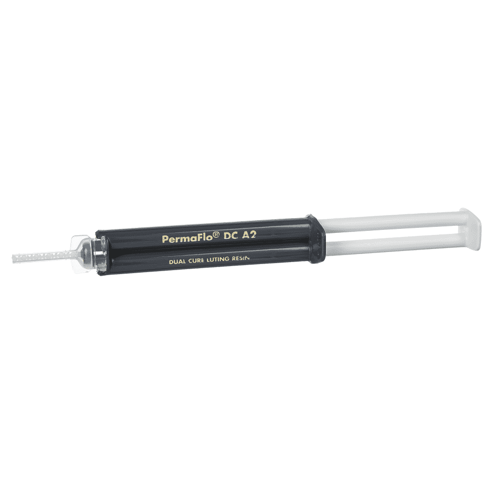 Η PermaFlo DC συνιστάται για την μόνιμη συγκόλληση ολοκεραμικών στεφανών κλπ. Χρησιμοποιήστε την PermaFlo DC για την συγκόλληση αξόνων και την ανασύσταση μετά την τοποθέτηση του άξονα. Η συγκόλληση του άξονα και η ανασύσταση μπορούν να γίνουν με μία κίνηση. Χάρις στην ιδανική της ρευστότητα ρέει βαθιά μέσα στην παρασκευή για τον άξονα και στη συνέχεια γύρω από τον άξονα για την ανασύσταση. Για να σταθεροποιήσετε το υλικό κατά την ανασύσταση, φωτοπολυμερίστε το για λίγα δευτερόλεπτα. Η PermaFlo DC είναι συμβατή με το Peak Universal Bond όπου είναι εφικτός ο φωτοπολυμερισμός.