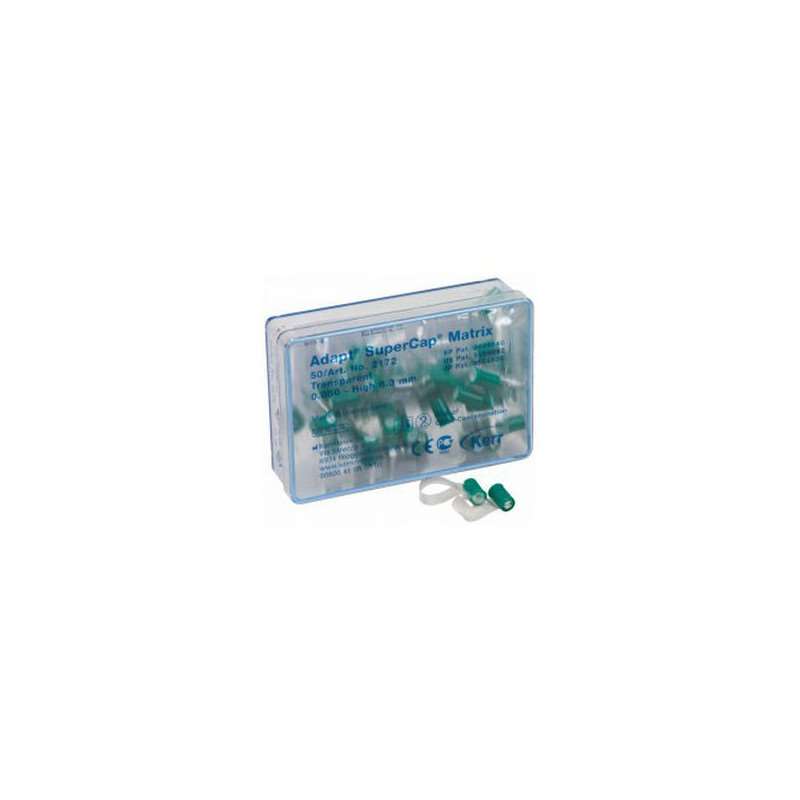 Σύστημα συγκράτησης τεχνητών τοιχωμάτων! Δεν απαιτείται συγκρατητήρας, δέχεται οποιαδήποτε ταινία τεχνητού τοιχώματος μεταλλική ή διάφανη, διαμορφωμένη ή ευθεία. Άνεση για τον ασθενή καθώς στο στόμα παραμένουν μόνο οι κοχλίες Supercap για να συγκρατούν το τοίχωμα. Αποστειρώσιμο εργαλέιο στους 140ο C. Ακριβώς διαμορφωμένο για την περιοχή μακροεντολών, το σύστημα σύσφιξης οδοντικής μήτρας SuperMat είναι ιδανικό τόσο για διαφανείς όσο και για χάλυβες οπίσθιες μήτρες. Το σύστημα στοχεύει στην επίτευξη μιας γρήγορης, εύκολης και τυποποιημένης εφαρμογής. Οι λεπτές και μοναδικές μήτρες δαχτυλιδιών Adapt SuperCap έχουν σχεδιαστεί ειδικά, βάσει στατιστικών δεδομένων, για καλύτερη προσαρμογή στην ανατομία των δοντιών. Το SuperCap διατίθεται σε ύψη δύο ζωνών με ένα μόνο σχήμα και είναι από ατσάλι ή διαφανές πλαστικό. Ακριβές και άνετο σύστημα τάνυσης. Λιγότερη δύναμη τάνυσης, επιτρέποντας την αποκατάσταση πολλών δοντιών ταυτόχρονα. Καλό ανατομικό σχήμα, το οποίο δεν παρεμβαίνει στη σκλήρυνση του φωτός. Απαιτείται ελάχιστη εργασία φινιρίσματος, επιτρέποντάς σας να εξοικονομήσετε χρόνο.